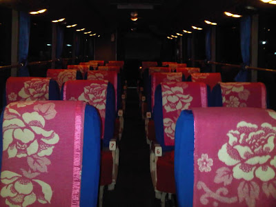 jadi nggak salah kalau orang yang naik bus ini bisa tidur dengan nyenyak, selain driver-nya yang oke waktu muter setir, tapi suspensi yang empuk bikin penumpang lupa daratan (lupa kalau lagi jalan di daratan,,berasa terbang,,hehe)